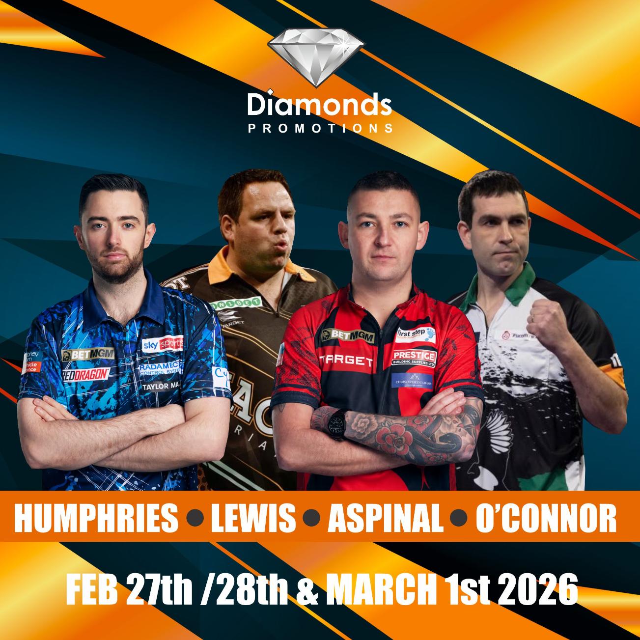 Welcome to Diamonds Promotions. We provide top class sporting and music events throughout Ireland. To date we have worked with some top sports stars such as World No1 Darts player Michael Van Gerwen and Raymond Van Barneveld. We have also done exhibitions with the greatest snooker player of all time Ronnie O'Sullivan, Mark Selby, Jimmy White, Judd Trump, Mark Allen, Ken Doherty & Stephen Hendry. All of our shows are produced to the very highest of standards to provide the best show and experience possible. We are currently doing a unique Match of the day type show and will be working with footballers Gary Pallister, Lee Sharpe, Mark Lawrenson & John Aldridge and match of the day presenter Ray Stubbs.